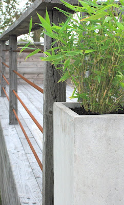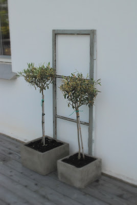 På bordet står det två Agapanthus i betongkrukor….
