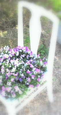 Här ser ni min trädgårdsstol, en sliten gammal stol som fått ett nytt liv…..